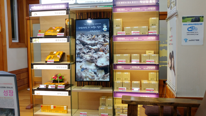 공진단 전용 부스를 추가하고 중앙에 DID를 설치해서 각종 환약안내와 한의원소개, 원내 공지사항 등을 안내하는 기능으로 구성중입니다.
